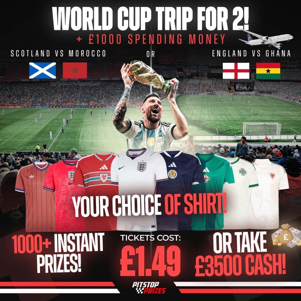 £1.49: WORLD CUP TRIP FOR 2 + £1,000 SPENDING MONEY! 1000+ INSTANT PRIZES! 🌍⚽🔥