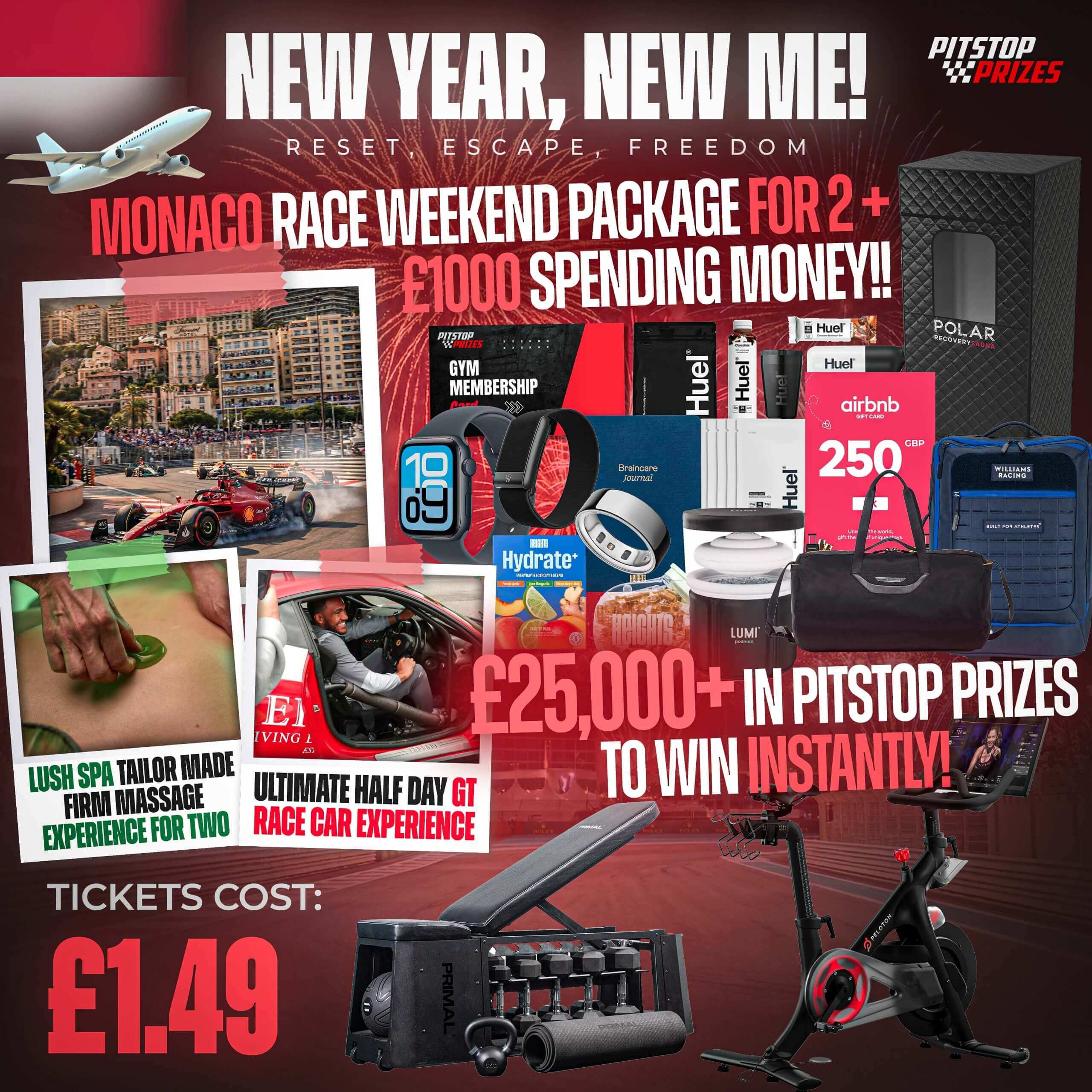 One £1.49 ticket puts you on the grid for a luxury Monaco escape for two – plus thousands of high-value instant Pitstop Prizes revealed the moment checkout completes ⚡️