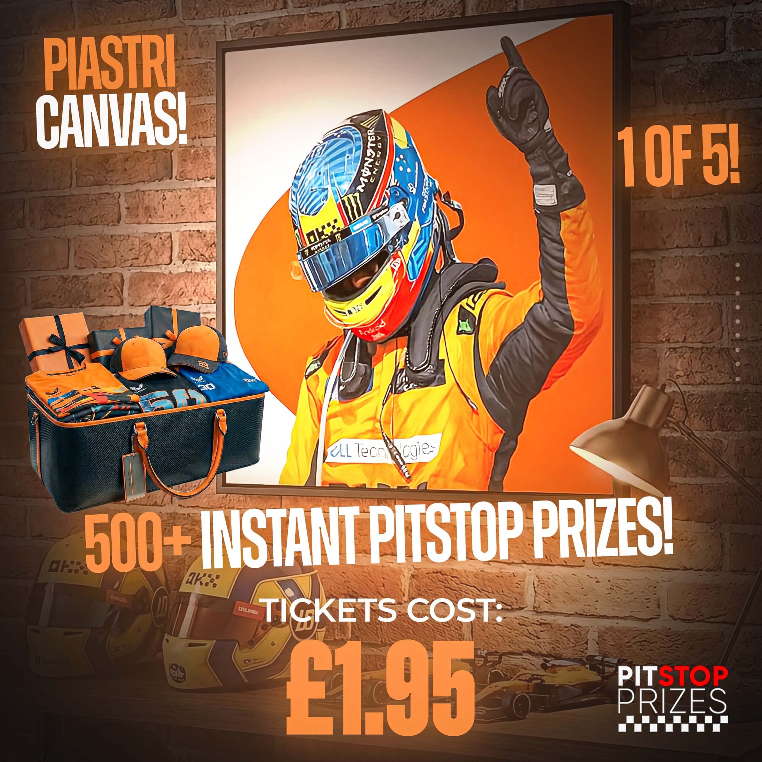 We are not authorised by or associated with McLaren or Formula 1. All prizes are officially licensed merchandise sourced from authorised distributors.