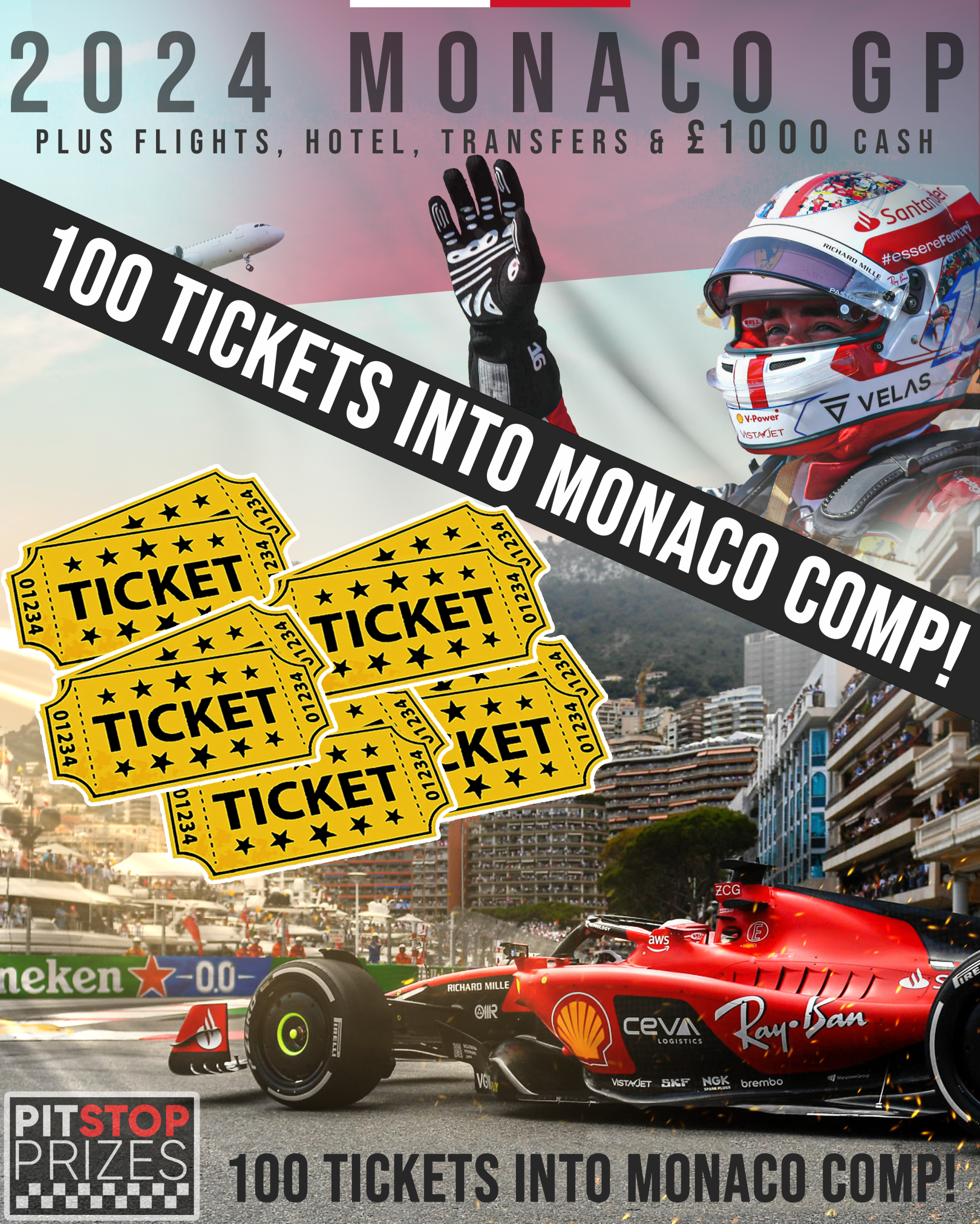 1 WINNER WILL BE PICKED AT RANDOM AND WIN THE MAIN PRIZE: 100 TICKETS INTO THE MONACO COMPETITION! (https://pitstopprizes.co.uk/product/monaco-grand-prix-package-1000-cash-over-100-instant-wins/)