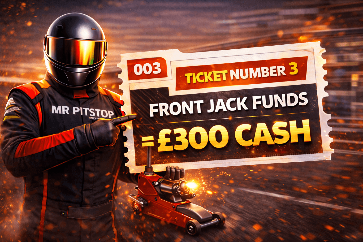 All draws are guaranteed. Physical items are subject to stock and availability; if unavailable, an equivalent Pitstop Credit may be provided. Instant Pitstop Prizes are fulfilled after the live draw. Duplicate wins for limited items may be replaced or credited. Cash alternatives are available where stated. By entering, you agree to these terms.