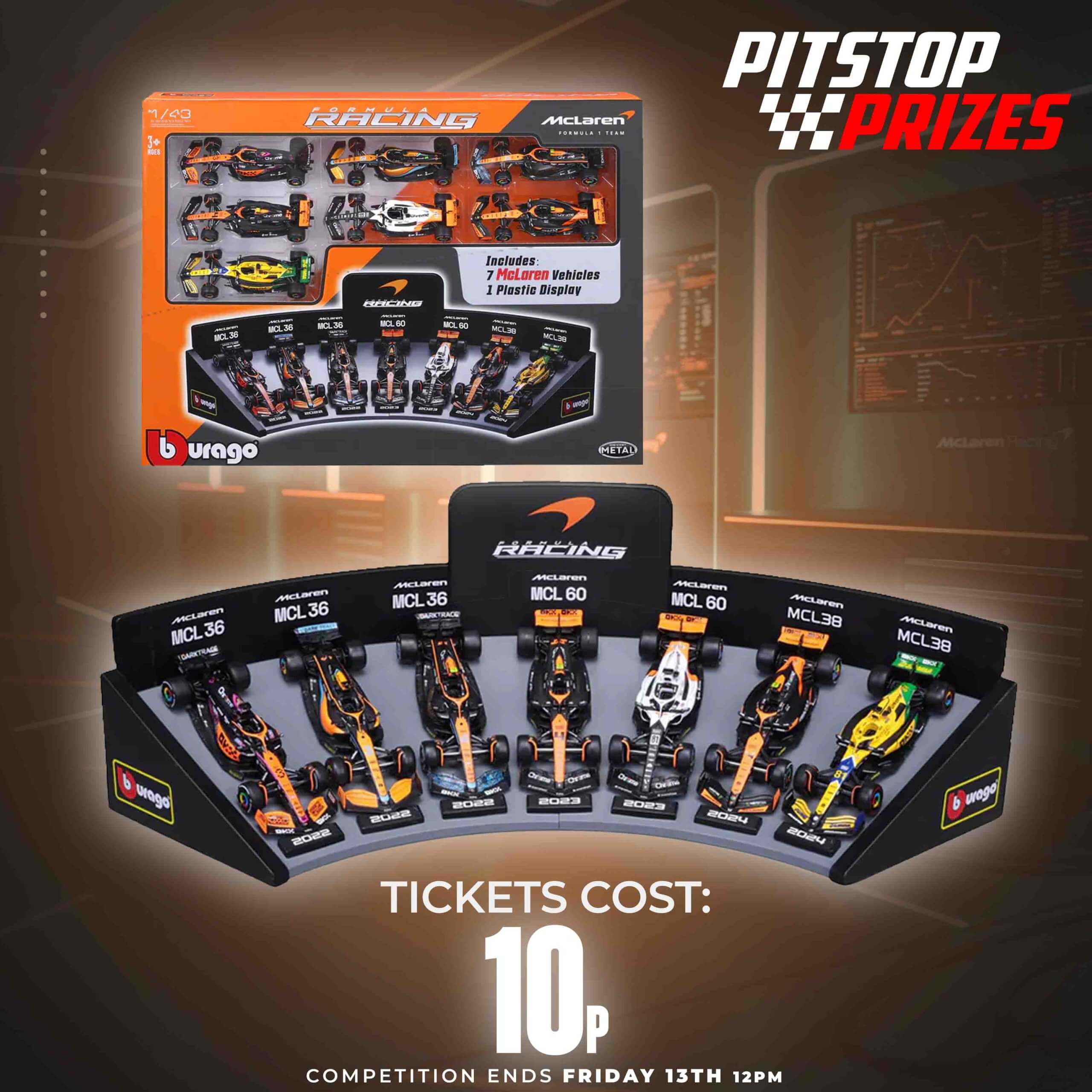 We are not authorised by or associated with McLaren or Formula 1. All prizes are officially licensed merchandise sourced from authorised distributors.