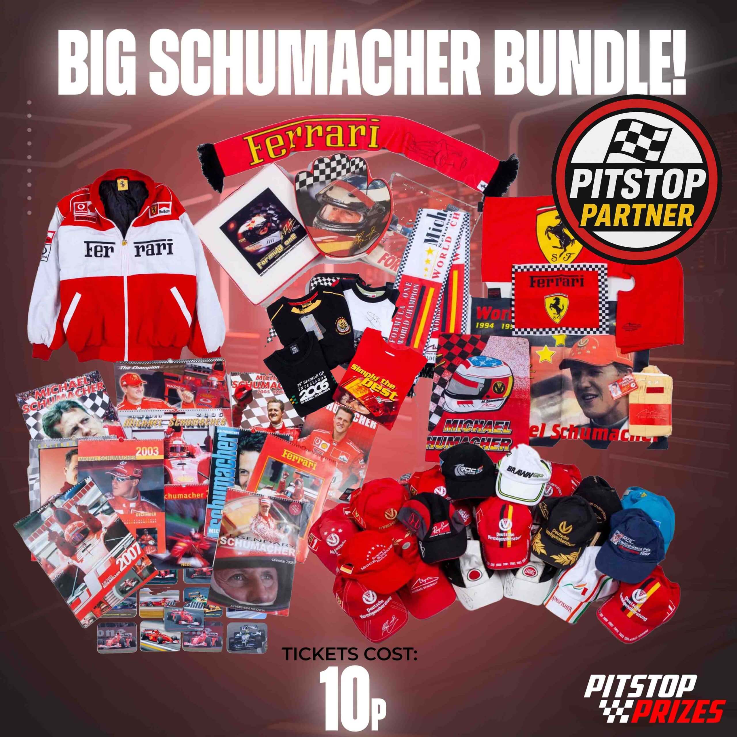 A seriously stacked collector bundle celebrating one of motorsportβs most iconic eras – loaded with Ferrari and Michael Schumacher memorabilia.