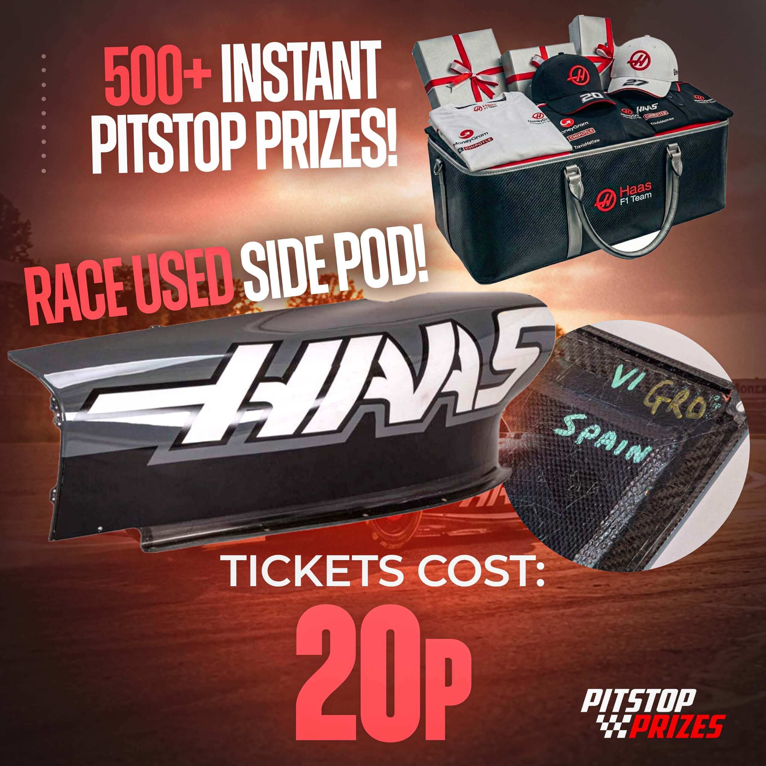 20p: HAAS RACE USED SIDE POD! 500+ INSTANT PRIZES!