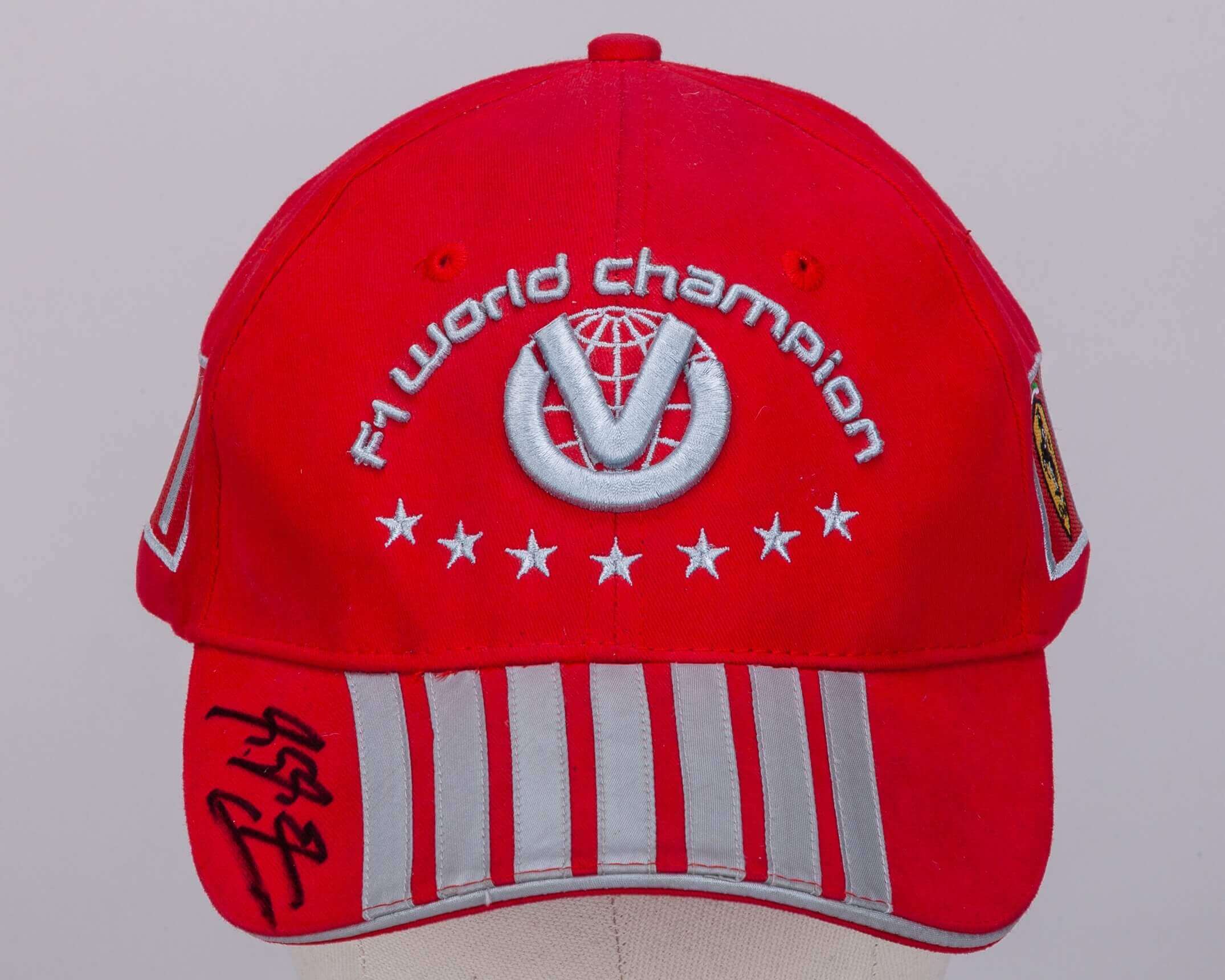 A truly special collectible for motorsport fans. This official licensed Ferrari cap has been personally signed by seven-time world champion Michael Schumacher. 🏆
