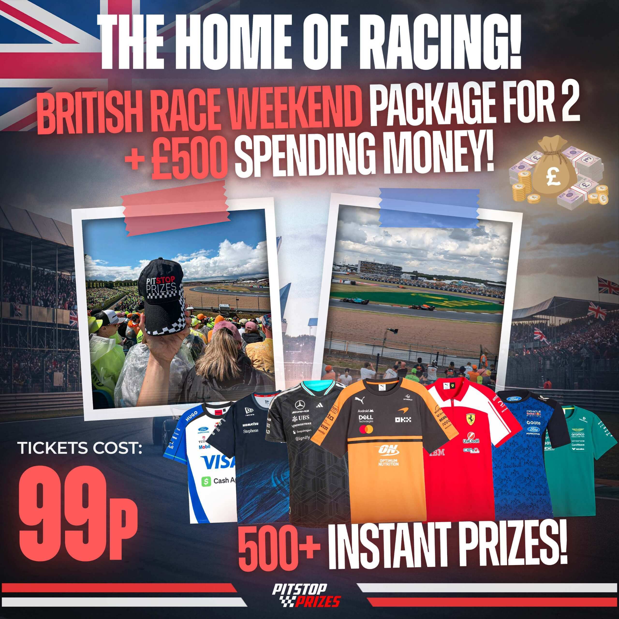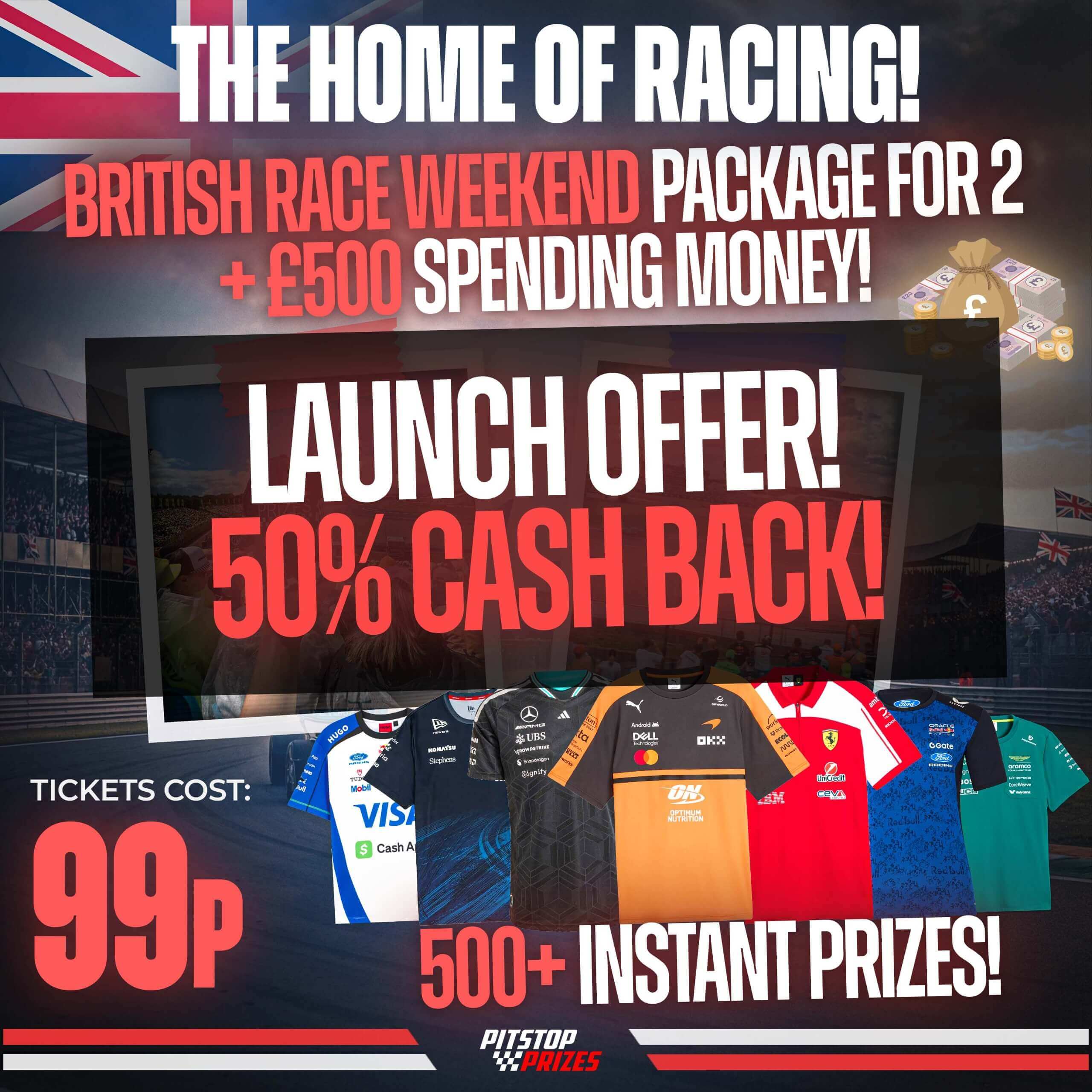 99p: BRITISH RACE WEEKEND FOR 2 + £500! 500+ INSTANT PRIZES!